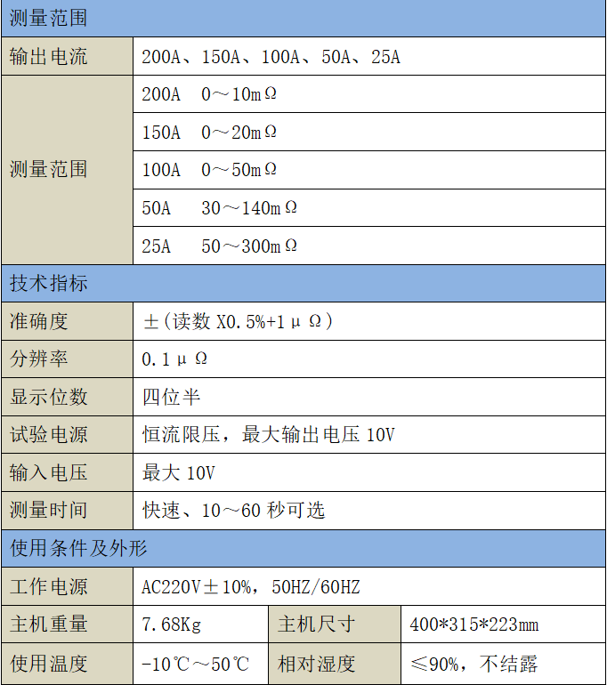 5、多档选择:200A、150A、100A、50A、25A多档电流,灵活应对不同测试场景。